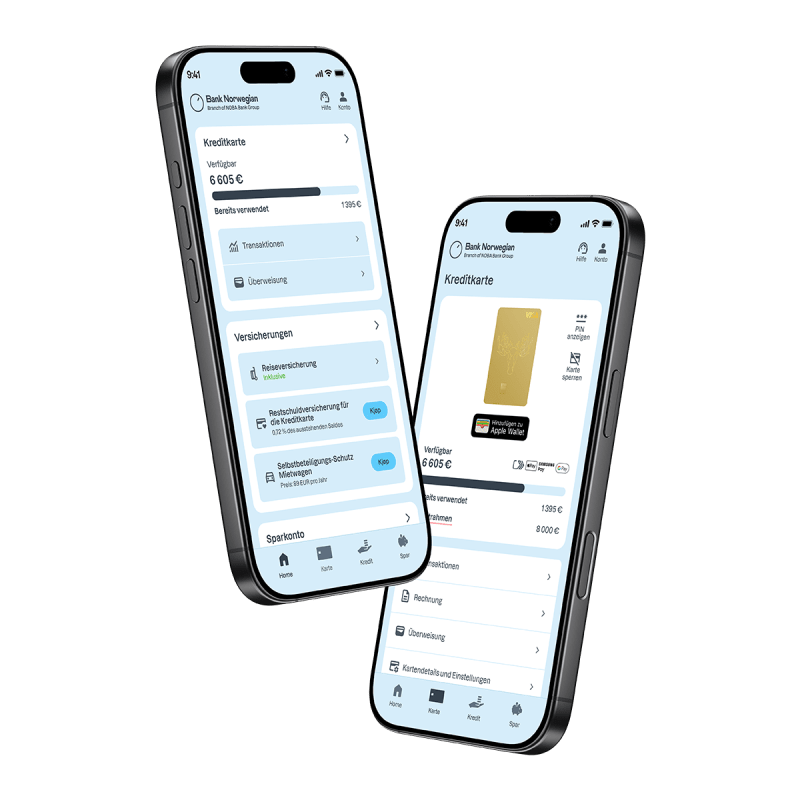 Mit der Bank Norwegian-Karte können Sie Rechnungen bezahlen, indem Sie Guthaben auf Ihr Referenzkonto überweisen. Bei uns haben Sie die Flexibilität, Ihren Kreditkartenrahmen ganz nach Ihren Wünschen zu nutzen.